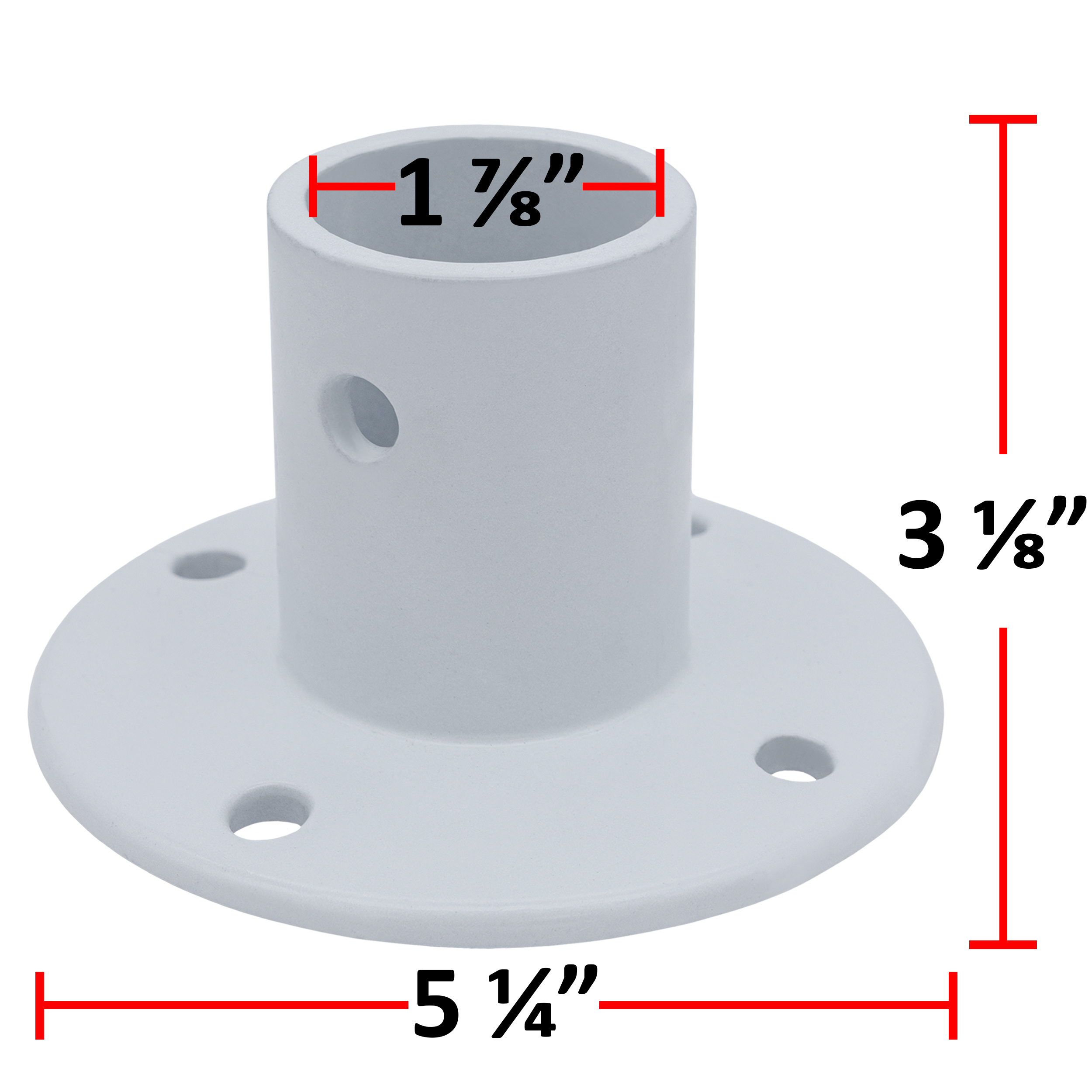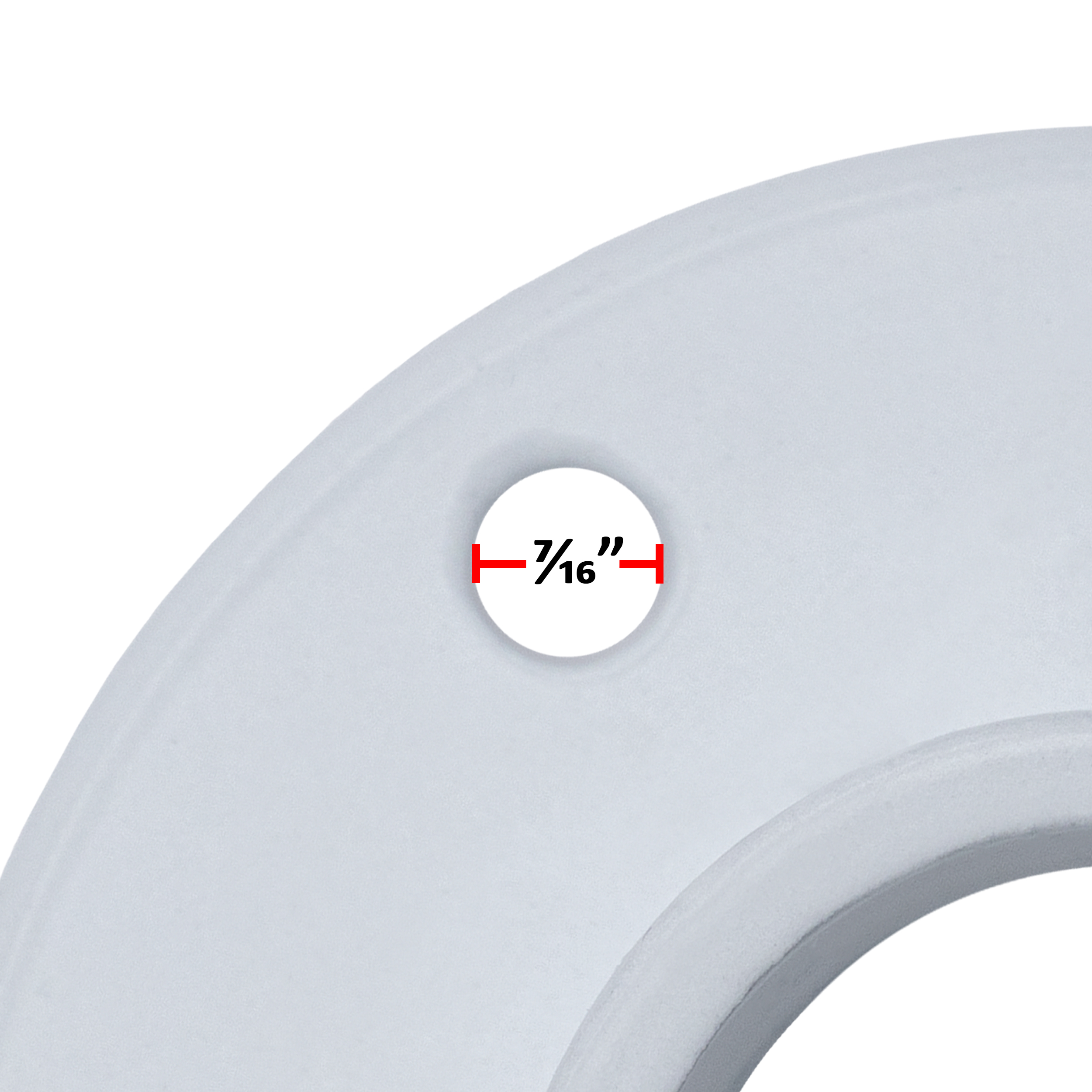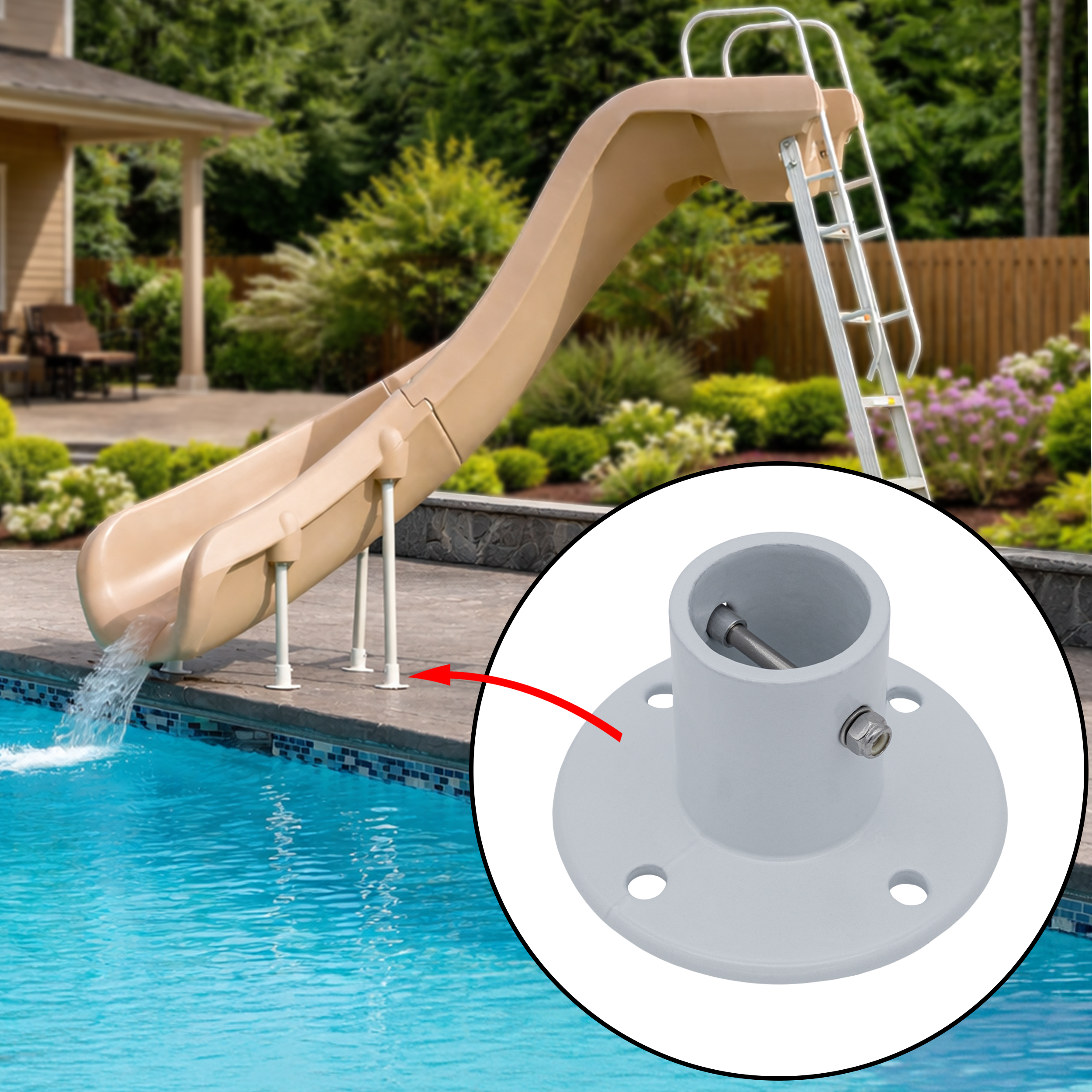 This aluminum slide deck flange with flange bolt offers a sturdy mounting solution for 1.9" OD tubing, designed for light to moderate-duty pool slide or equipment installations. Each flange features four symmetrically pre-drilled holes for secure deck mounting. It includes a carbon steel bolt, bushing, washers, and lock nut to fasten your equipment in place with confidence.