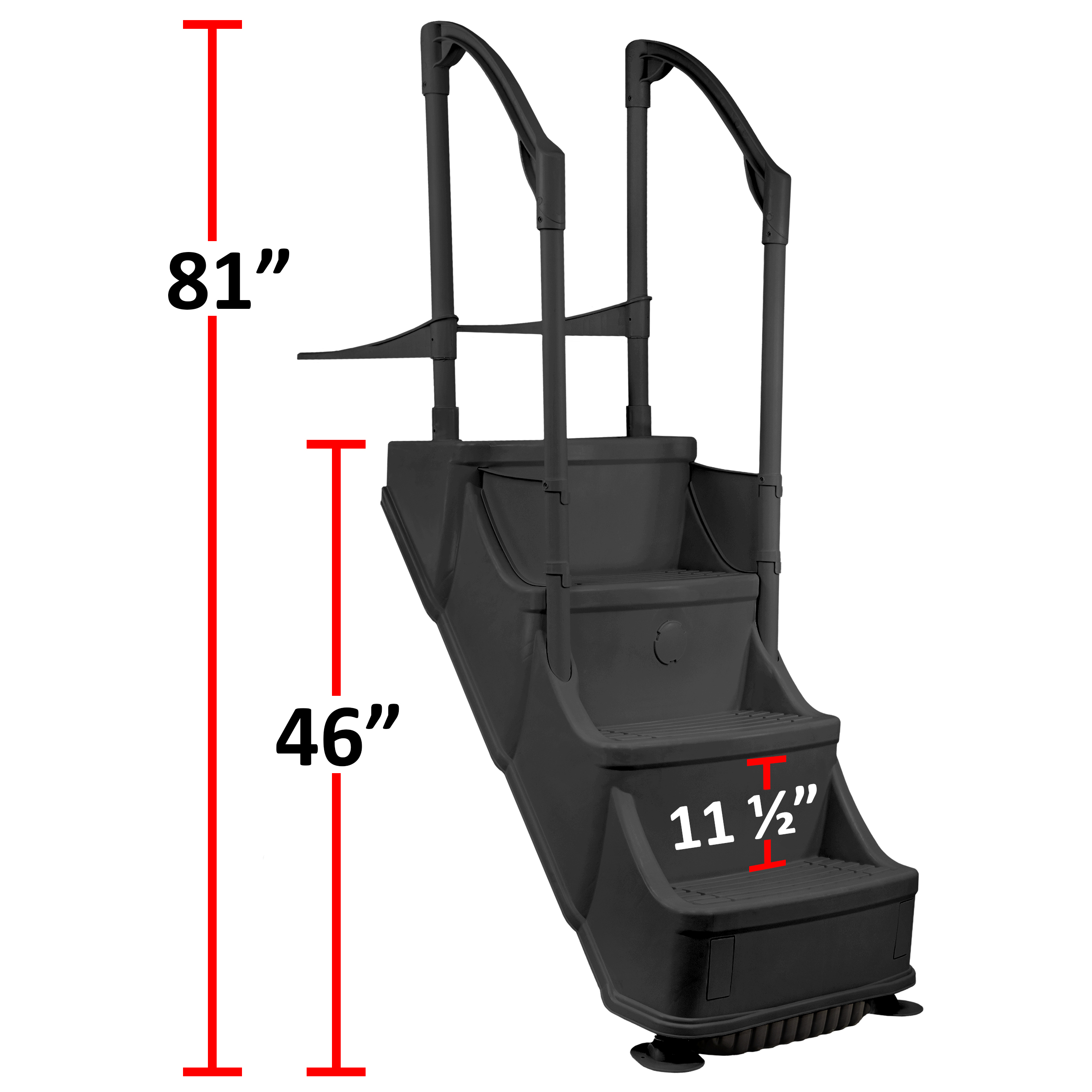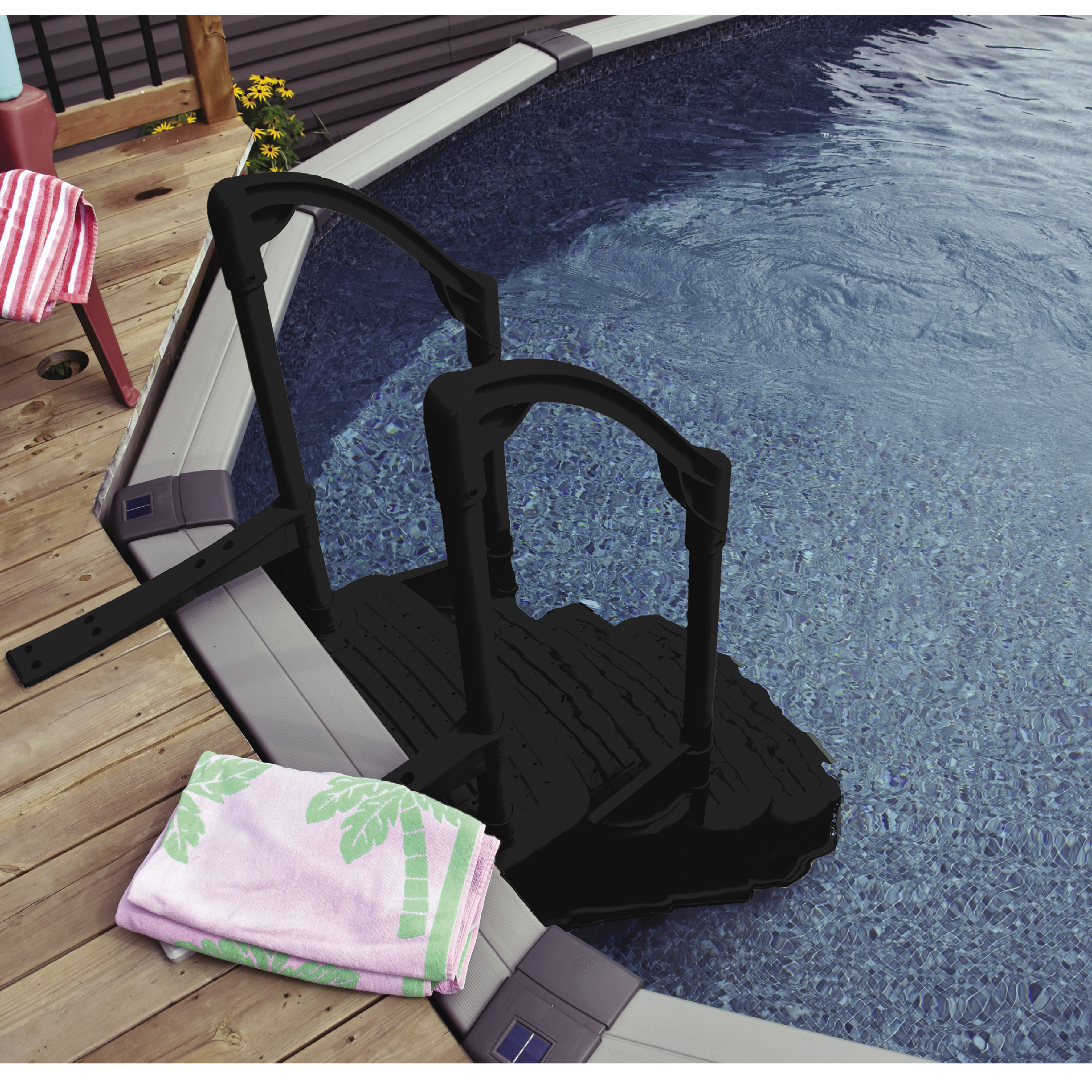 Ensure your safe entry and exit from your pool using these Black Drop In Steps. Molded in one piece, these steps come together with minimal assembly required, allowing them to be dropped into your above ground pool with ease. The included adjustable handrails and mounting brackets add additional security to your steps, allowing them to fit 48”, 52”, or 54” wall heights.