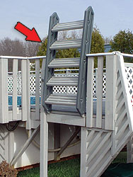 Fanta-Sea™ swing-up ladder latch to lock your ladder in place when not in use - preventing unauthorized access to your pool when you're not around.