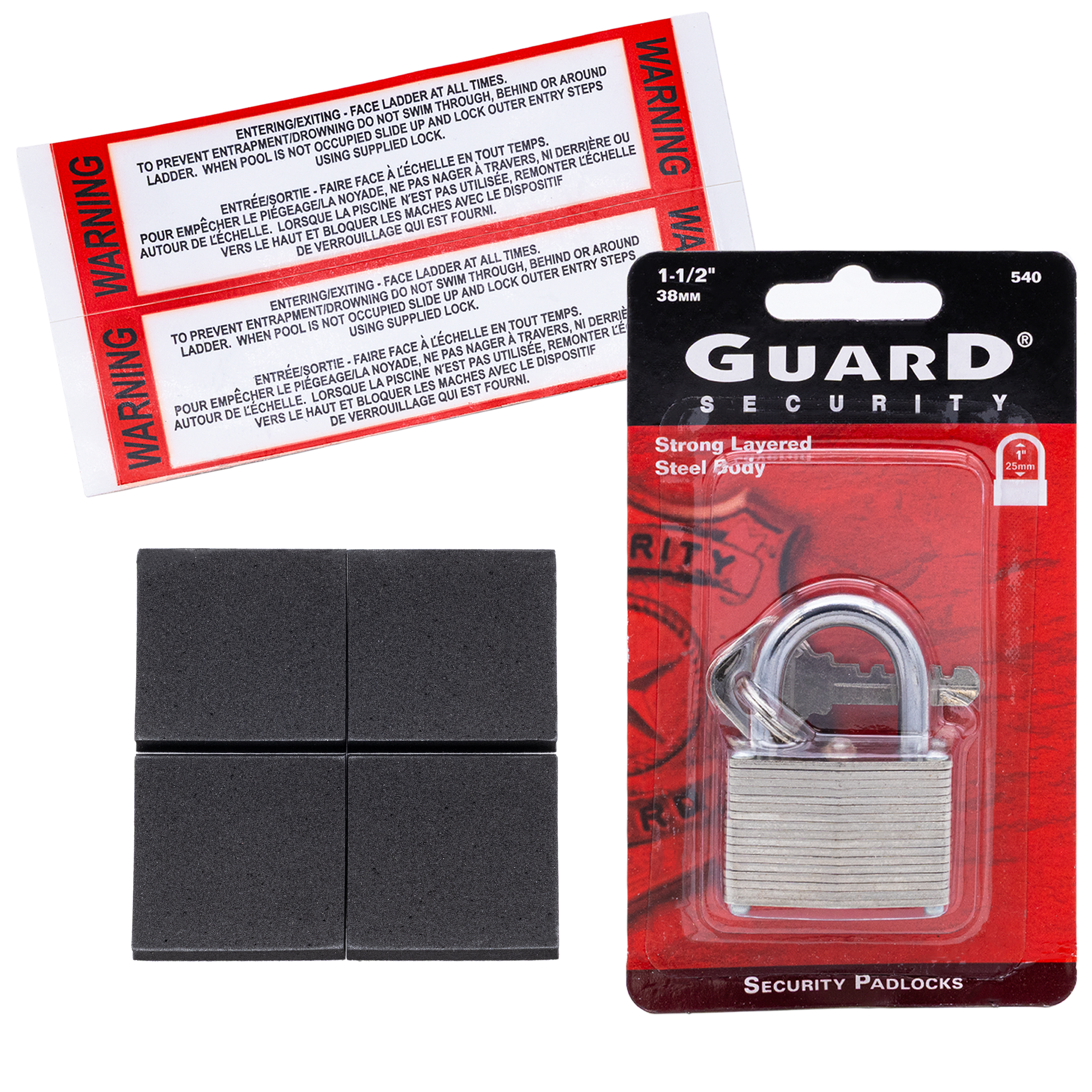 Repair your Aqua Select® A-Frame Swing Up & Lock Ladder using genuine hardware with this replacement Hardware Bag. The hardware bag contains all the necessary parts to repair your steps, including a replacement padlock and barrier bumper.