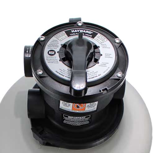 - 6 or 7 position Hayward® 2" VariFlo® control valve with easy-to-use lever-action handle lets you dial any of the valve/filter functions. Integral sight glass lets you see when the backwash cycle is completed