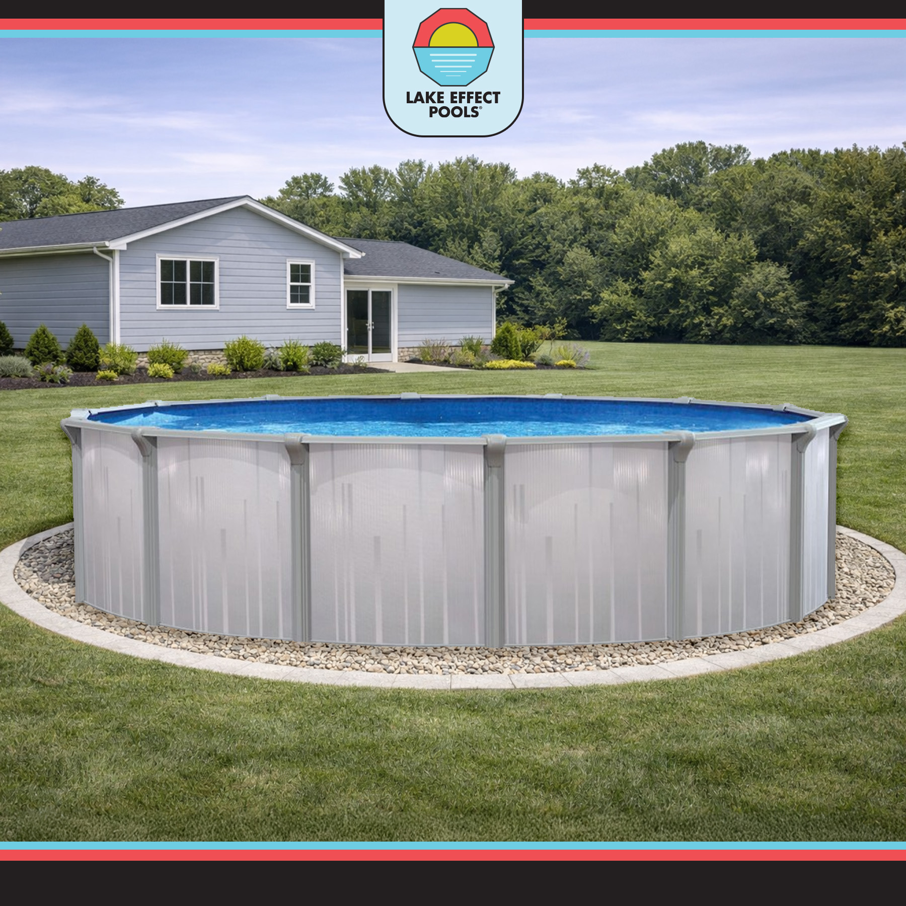 The Lake Effect® Tortuga is the perfect above ground pool for any backyard, made with durability in mind. It features a modern, blocky pattern, and comes with everything you need for an easy above ground pool installation.