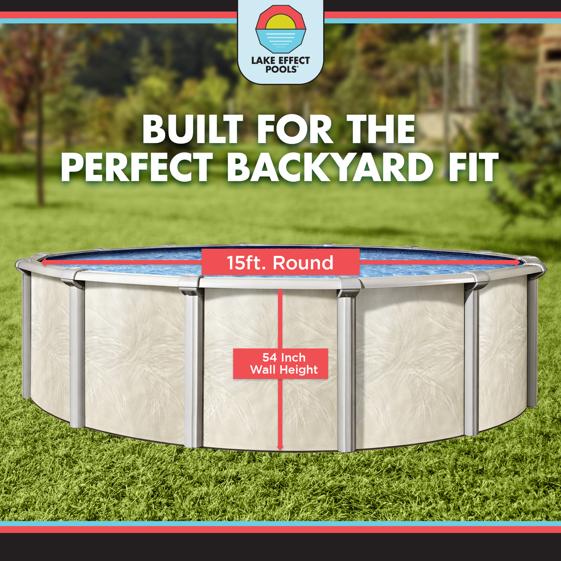 The Lake Effect® Forever is the perfect above ground pool for any backyard. It features simple, artistic brush strokes across a cool-toned background, and comes with everything you need for an easy above ground pool installation.