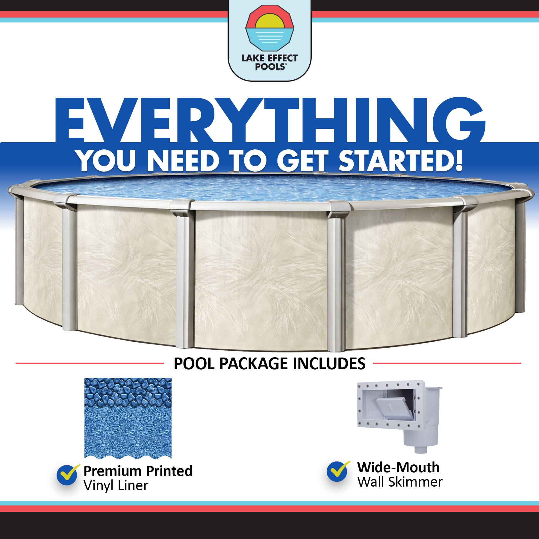 The Lake Effect® Forever is the perfect above ground pool for any backyard. It features simple, artistic brush strokes across a cool-toned background, and comes with everything you need for an easy above ground pool installation.
