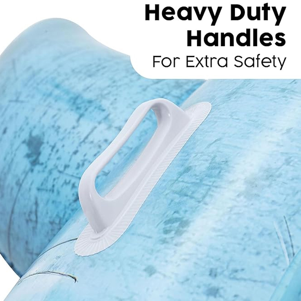 This realistic great white shark inflatable pool ride-on is ideal for taking out for a spin at the swimming pool, lake, or beach. With heavy-duty handles for safe riding, kids will have a great time playing on this realistically printed shark while soaking up those sun rays. It will be the coolest pool inflatable at any pool party. Two air chambers make it easy to inflate and provide extra reassurance while in the water.