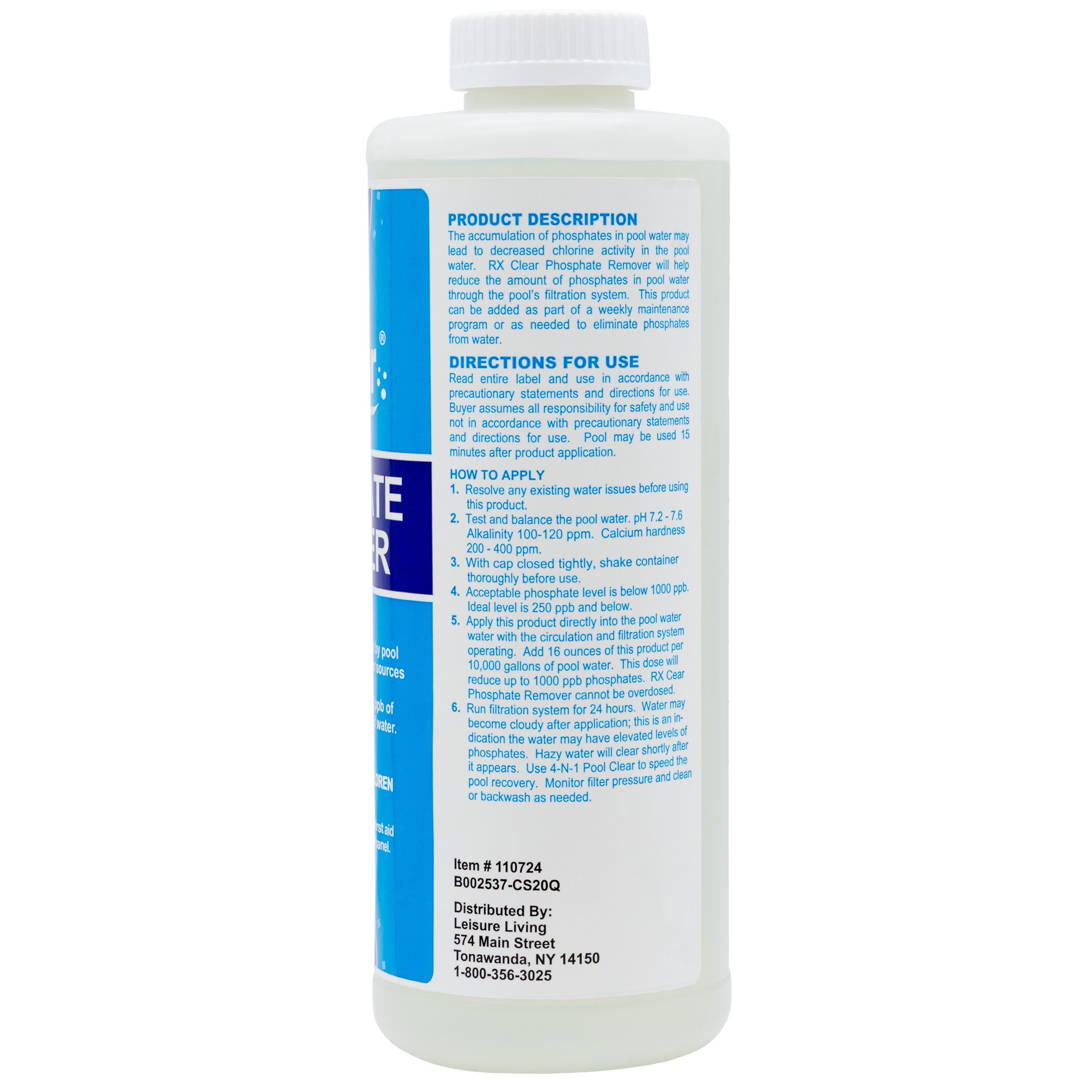 The Rx Clear® Phosphate Remover effectively removes up to 2,000 ppb of phosphates per 10,000 gallons of water. While enhancing the performance of salt generators the phosphate remover prevents algae from growing in your swimming pool. Created with a specialized non-toxic formula our remover will prevent build-up and staining safely and allow your salt generator to operate at its peak performance.