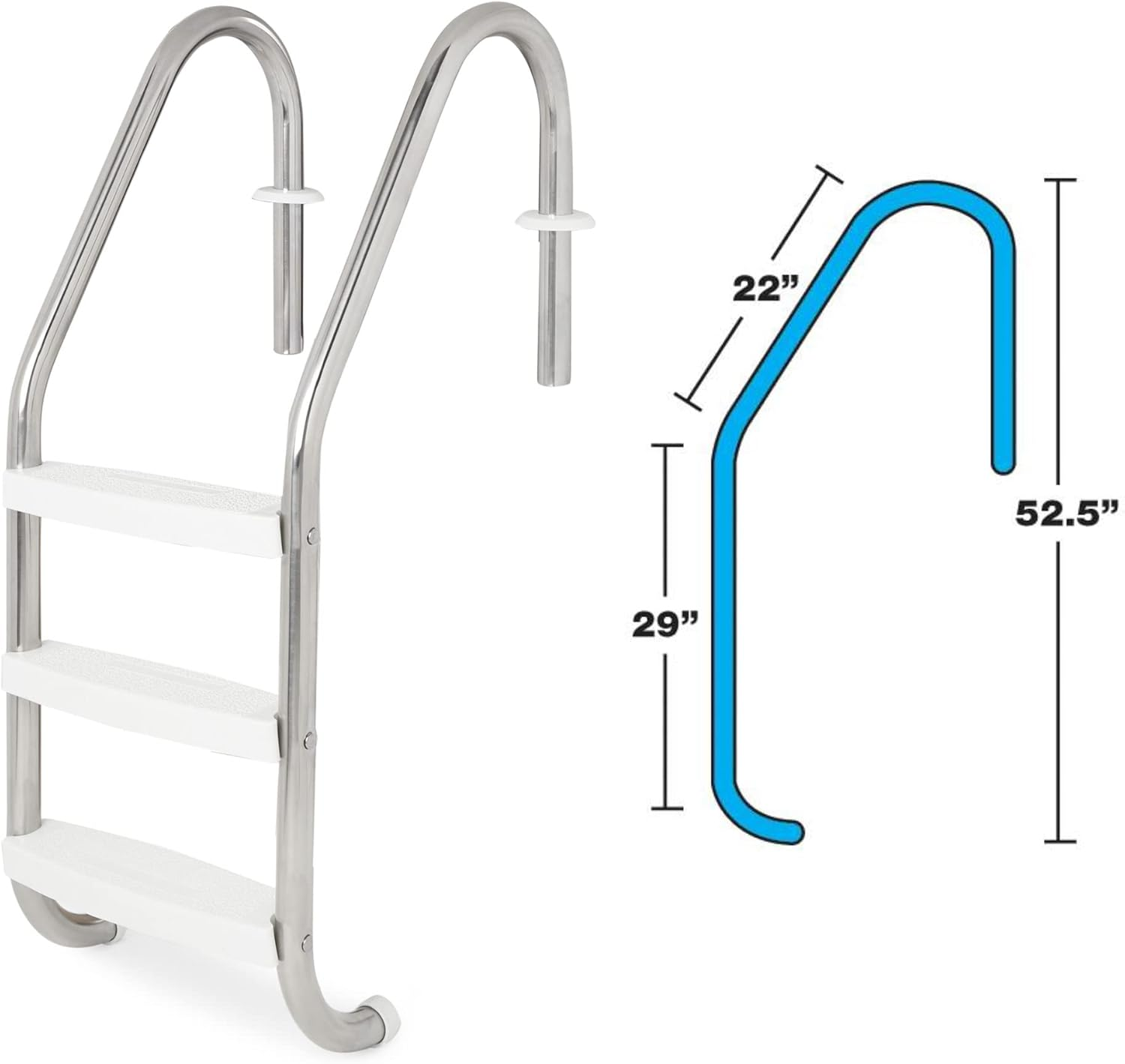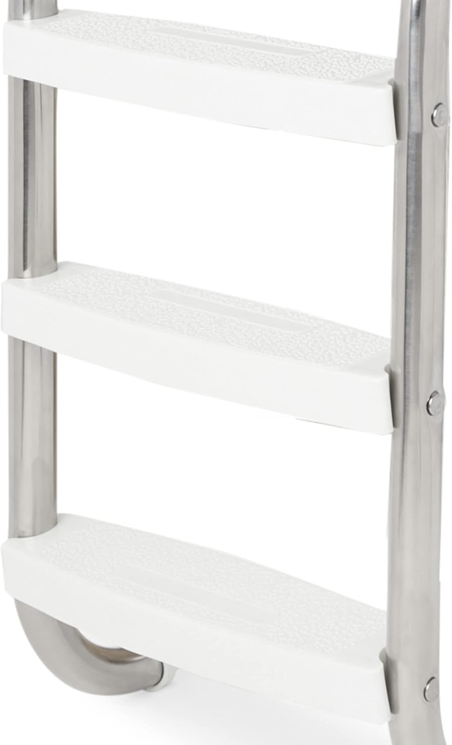 Ensure your safety when entering or exiting your pool with the heavy duty Swimline® HydroTools™ Inground Stainless Steel Pool Ladder. This pool ladder is made from premium stainless steel, enduring rust and corrosion, regardless of the pool type or weather conditions. The white plastic steps are designed to resist rust and mold, allowing this ladder to withstand regular use throughout multiple seasons. The extended 52.5” height accommodates elevated decks and deeper inground pool installations.