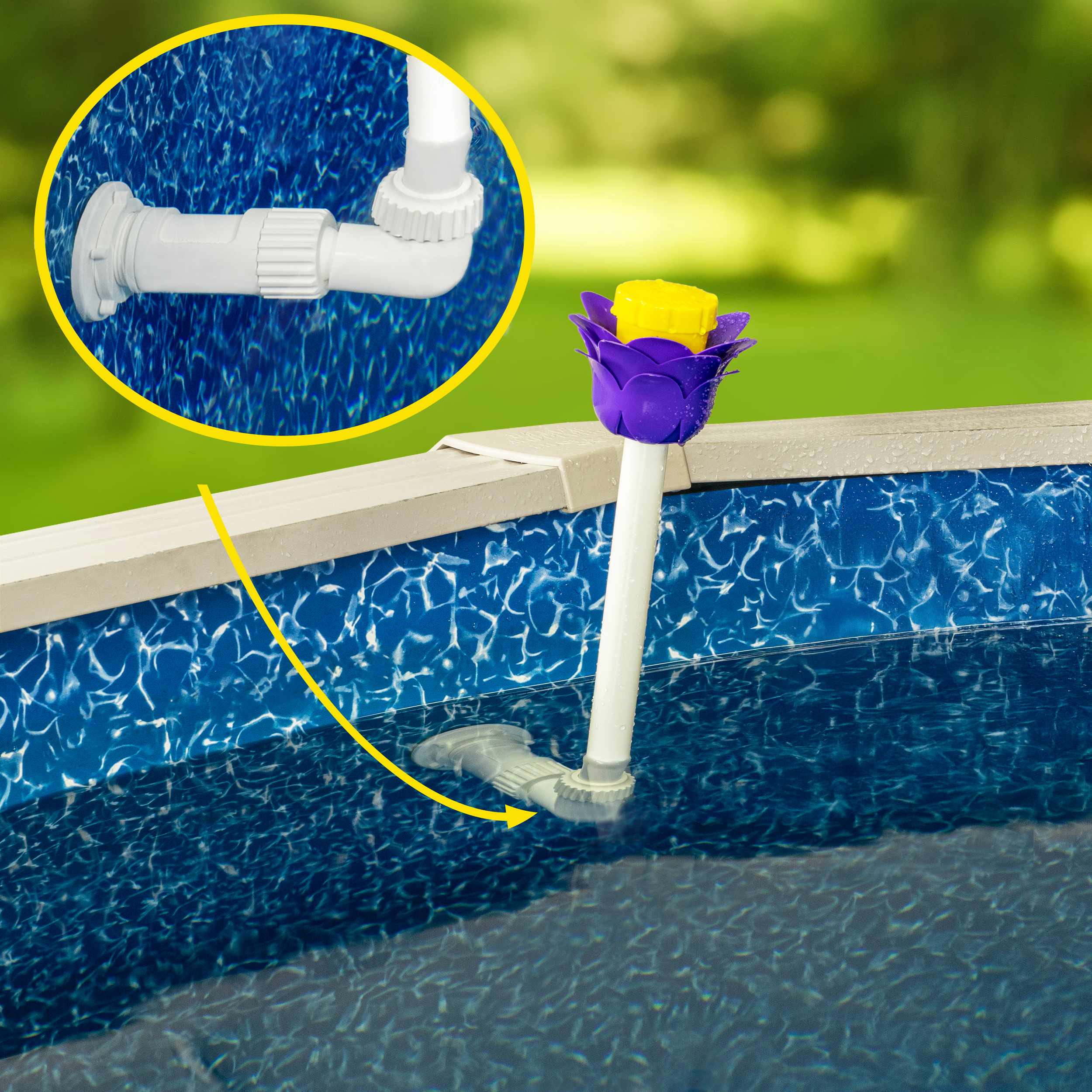 Create the ideal ambiance with the Wall Mounted Flower Waterfall Fountain. This fountain connects directly to the existing return line on both above ground and inground pools. With a fully variable spray height, you can achieve the ideal look for your pool. Not only does the flower add color to your pool, but it also aerates and cools your pool on a hot summer day.
